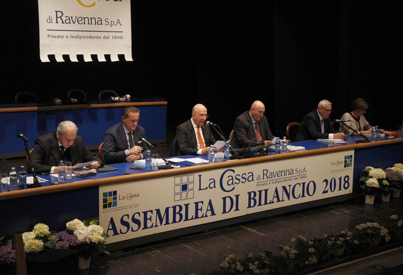 L’ASSEMBLEA DEGLI AZIONISTI HA APPROVATO ALL’UNANIMITA’ IL BILANCIO 2018 E LA DISTRIBUZIONE DI UN DIVIDENDO (PER IL 25° ANNO CONSECUTIVO) PARI A 0,40 EURO PER AZIONE. ANTONIO PATUELLI RIELETTO PER ACCLAMAZIONE PRESIDENTE DELLA CASSA DI RAVENNA SPA.